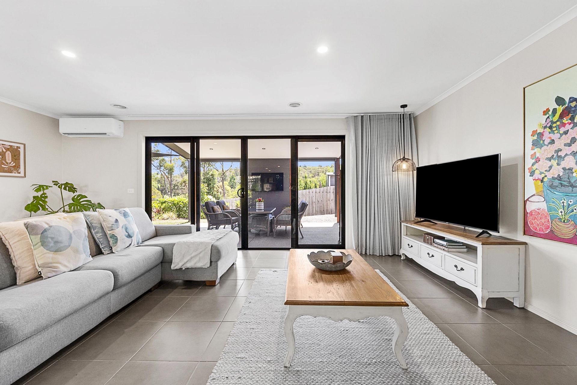 The open-plan kitchen and living area seamlessly flow to a sun-drenched outdoor entertaining space, perfectly positioned to capture stunning west-facing sunsets. Surrounded by established gardens and backing onto the beautiful Australian bush, this home offers a genuine sense of privacy and connection to nature.