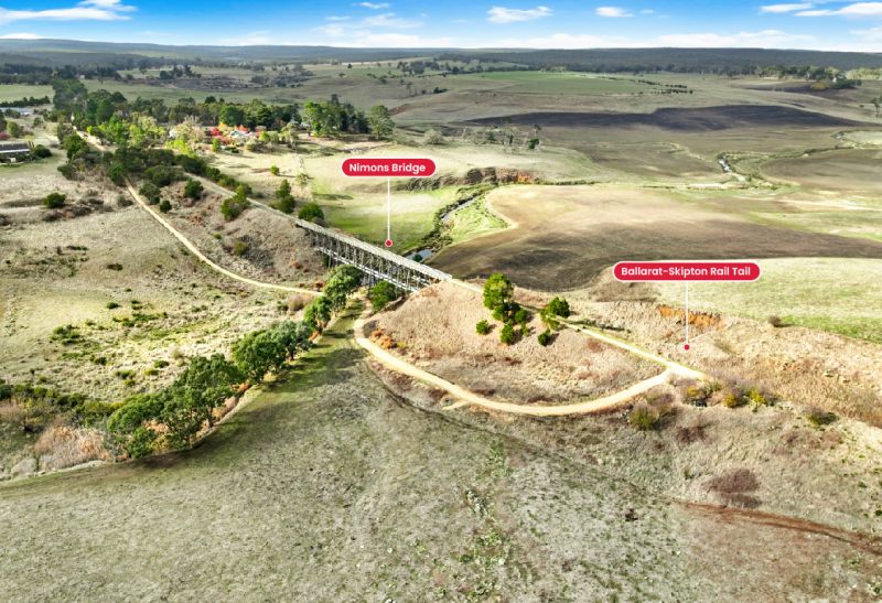 Enjoy the serene lifestyle while being just a short walk to the iconic Nimons Bridge and the Ballarat-Skipton Rail Trail, ideal for walking, cycling and immersing yourself in nature.