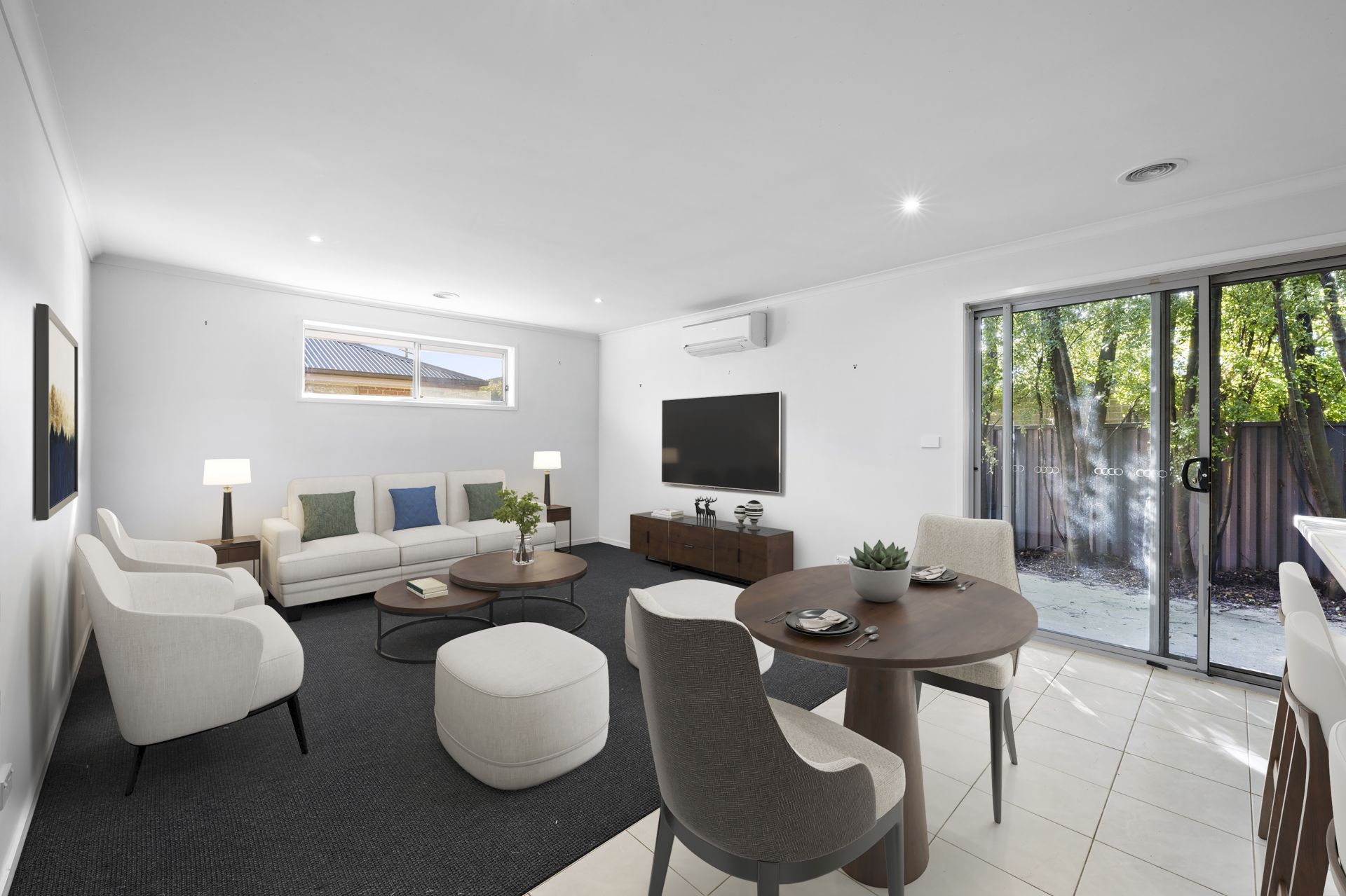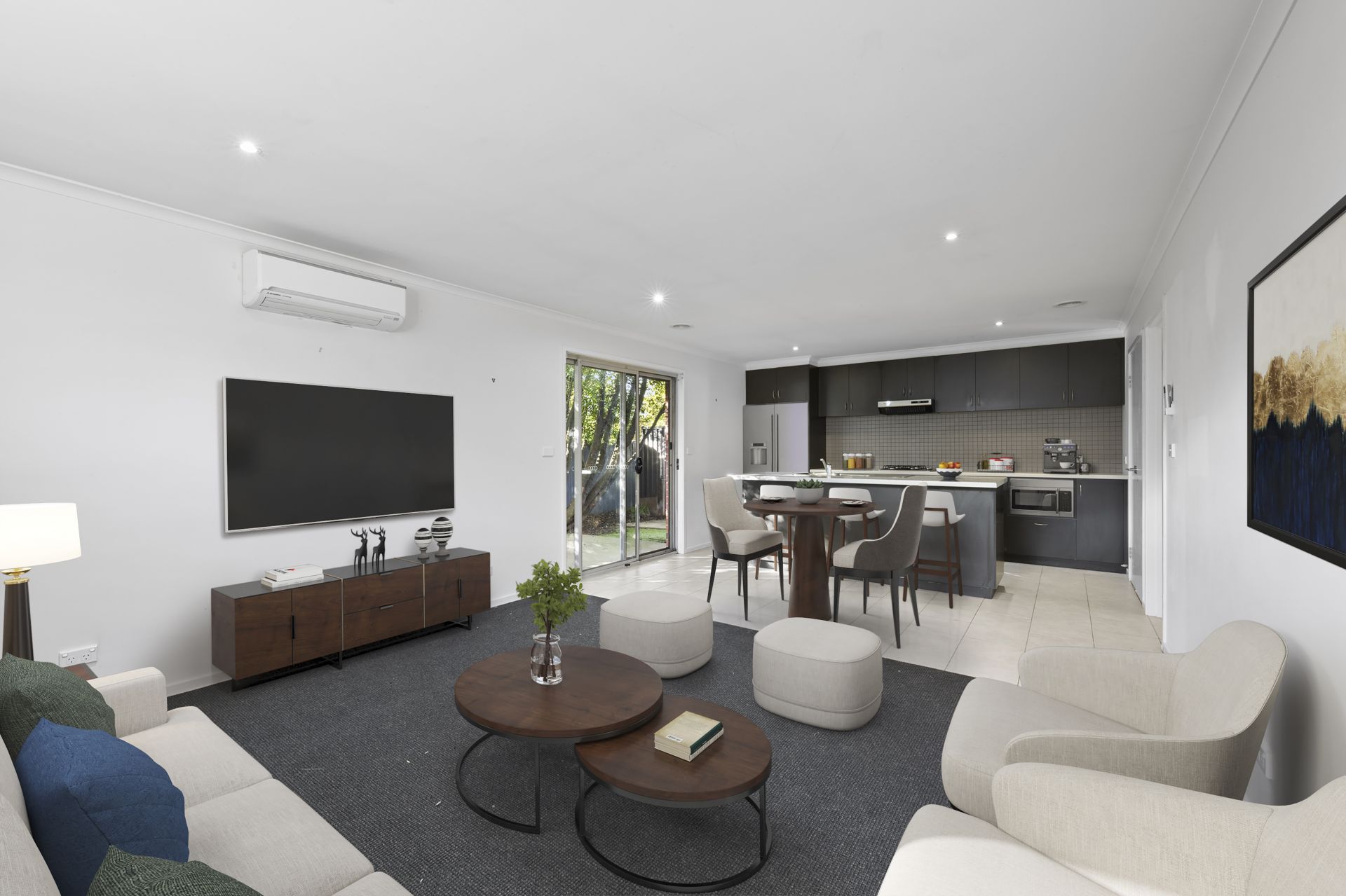 The light-filled interior features an open-plan kitchen that flows seamlessly into the meals and living area, creating a comfortable and functional living space. Other highlights include a dual-access central bathroom, split-system air conditioning, a private low-maintenance courtyard, and a single lock-up garage with direct internal access.