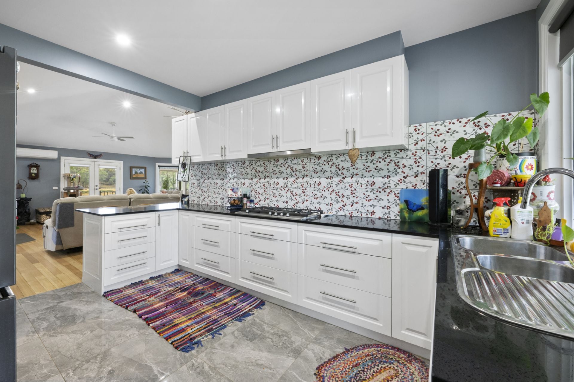 Comfort is assured year-round with reverse-cycle air conditioning in both the master bedroom and main living area, complemented by wood fire heating that enhances the home's cosy country charm.