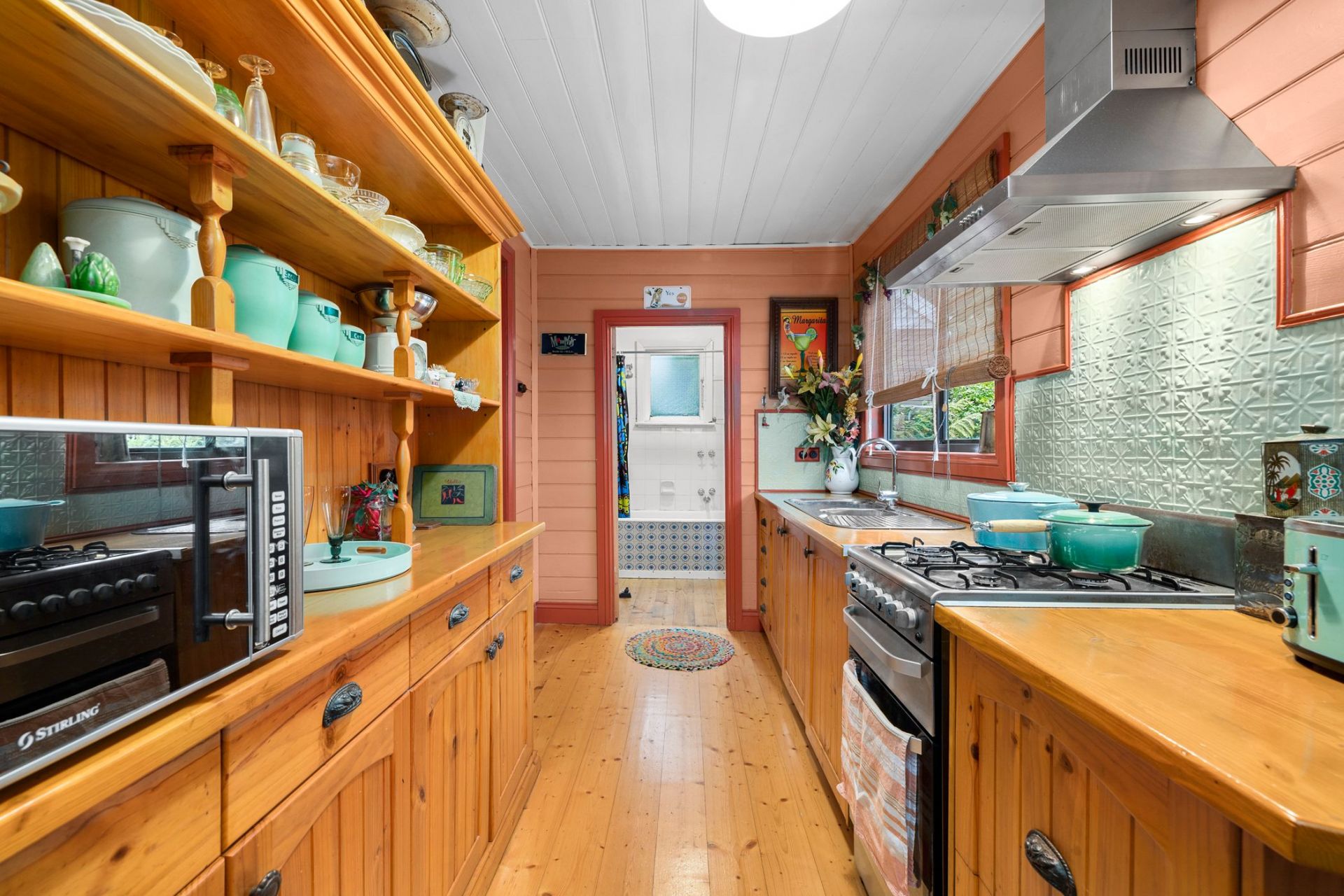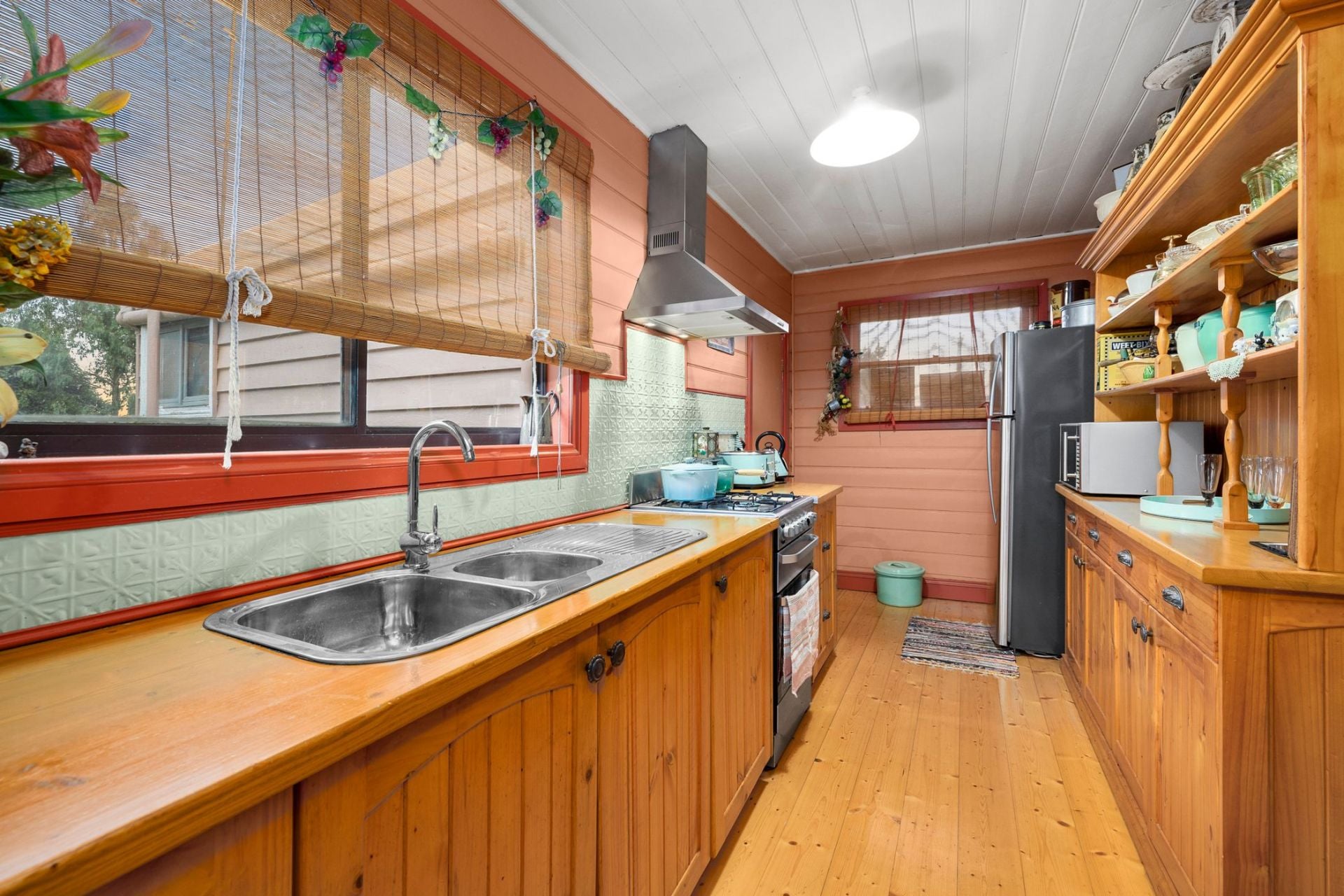 The home comprises three bedrooms with soaring ceilings and polished floorboards, and timber lined ceilings that make this home shine. The front lounge is spacious, light and has a relaxed atmosphere.