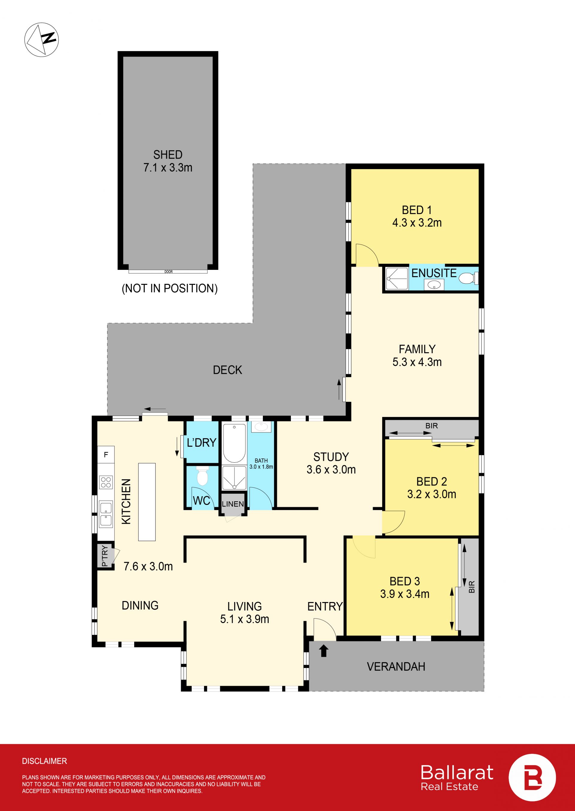 Set behind a welcoming verandah and framed by generous proportions, this well-appointed family home delivers flexibility, comfort and outstanding indoor–outdoor living. At the heart of the home is a modern kitchen featuring stainless steel appliances, excellent storage and a seamless connection to the expansive meals area, making everyday living and entertaining effortless. Multiple living zones are thoughtfully positioned throughout the floor plan, including a spacious main living room, an additional lounge and a separate study - ideal for families of all sizes or those working from home. Accommodation is equally impressive, offering a private master bedroom complete with ensuite, while the remaining bedrooms are well sized and include built-in robes. A central updated bathroom with a separate toilet adds convenience for busy households. Step outside to a large decked entertaining area that overlooks the generous rear yard - perfect for hosting gatherings, relaxing with family or enjoying outdoor living year-round. The property is further complemented by a substantial shed, providing excellent storage or workshop potential. Ideally positioned close to schools, shopping precincts and public transport, this home presents a fantastic opportunity for buyers seeking space, functionality and lifestyle in a convenient location. A versatile and inviting residence ready to be enjoyed now, with plenty of scope to personalise for the future!