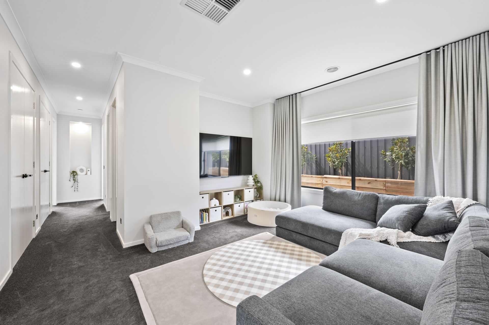 Step inside to discover three expansive living areas, including a light-filled open-plan living, dining, and kitchen, a central second living space, and a separate rumpus/play area-perfect for growing families.