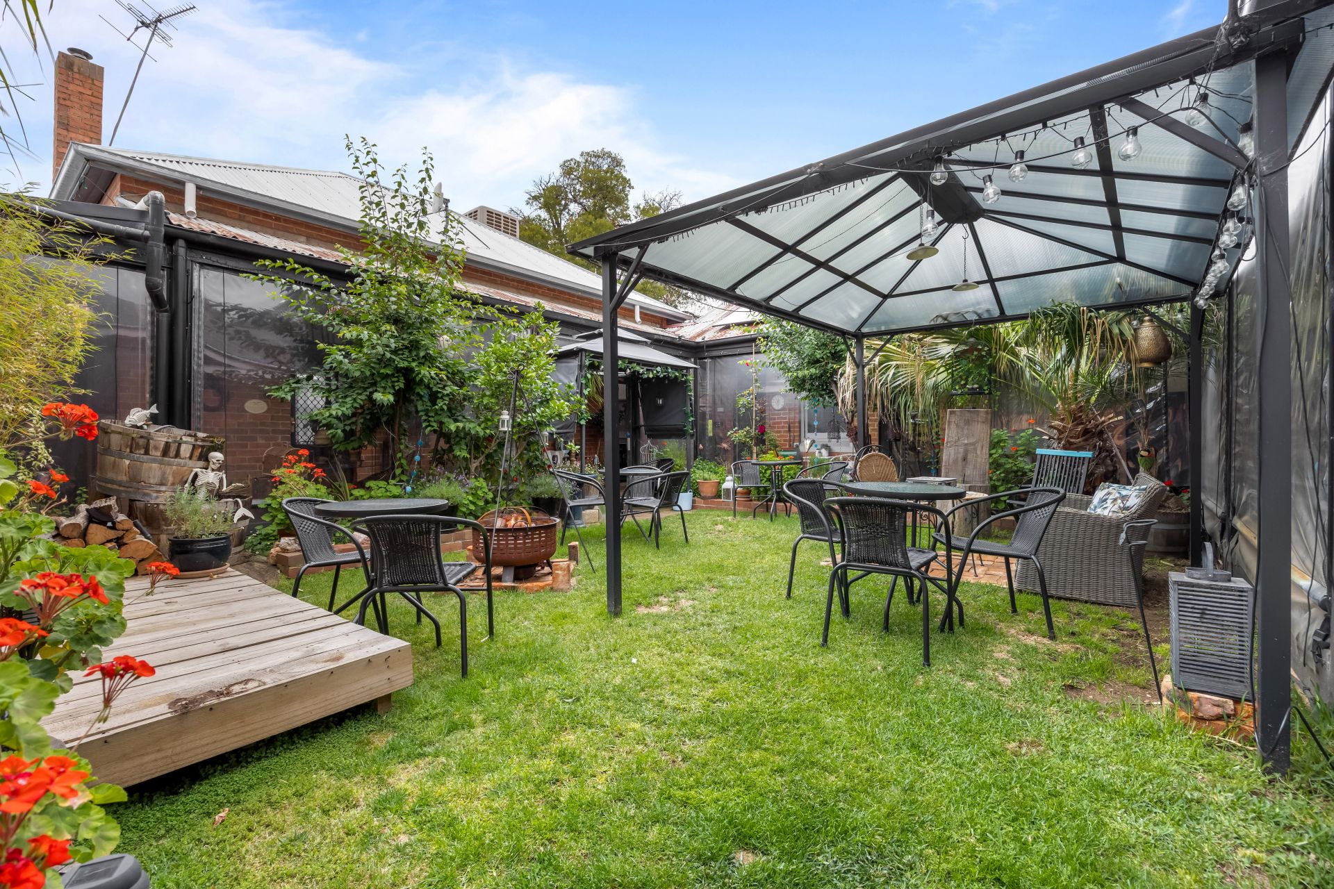 • Courtyard with gazebo, BBQ/band deck, café blinds and misting fan