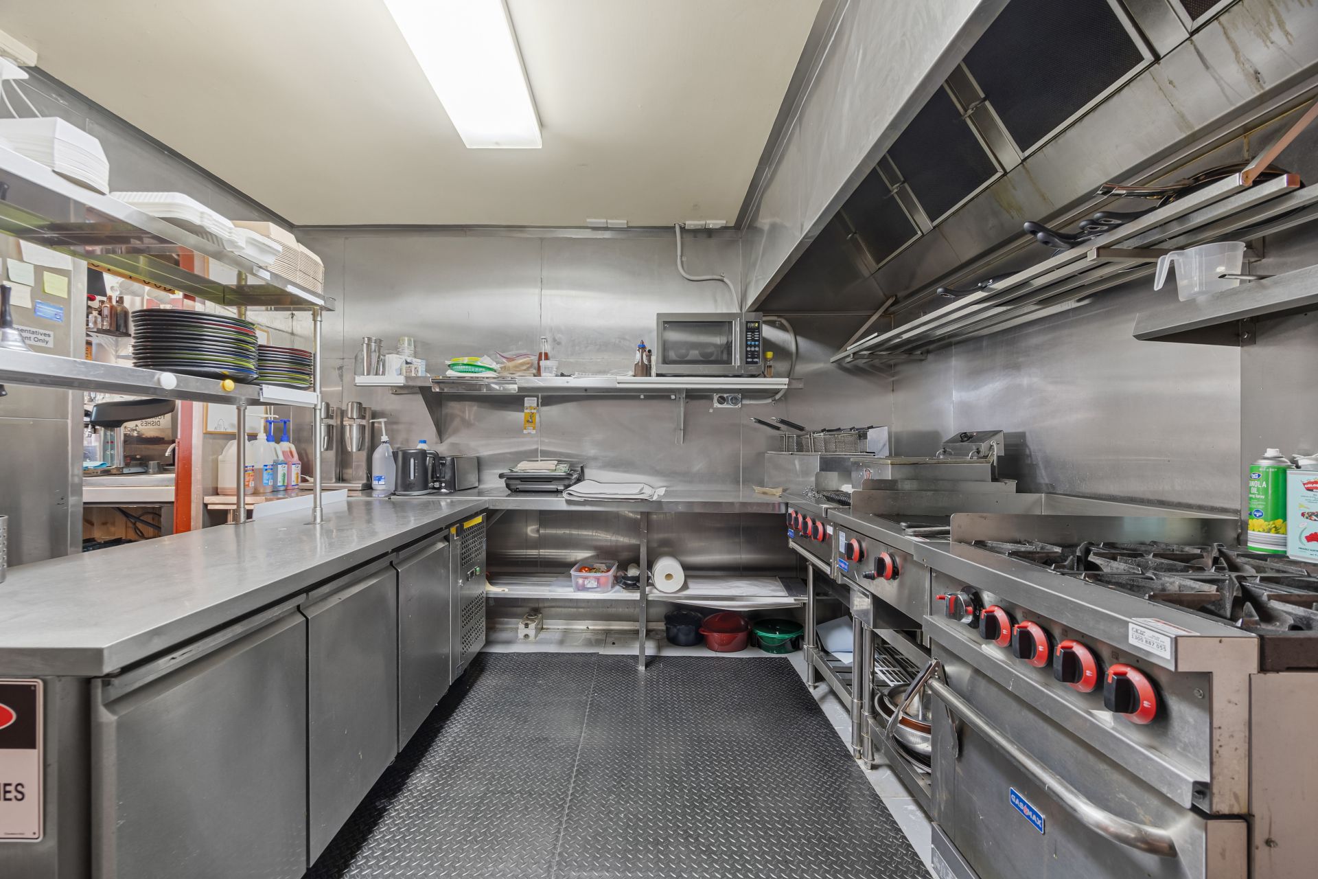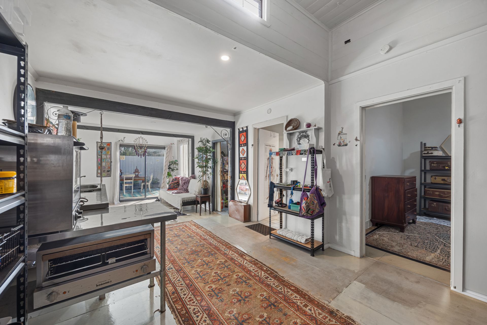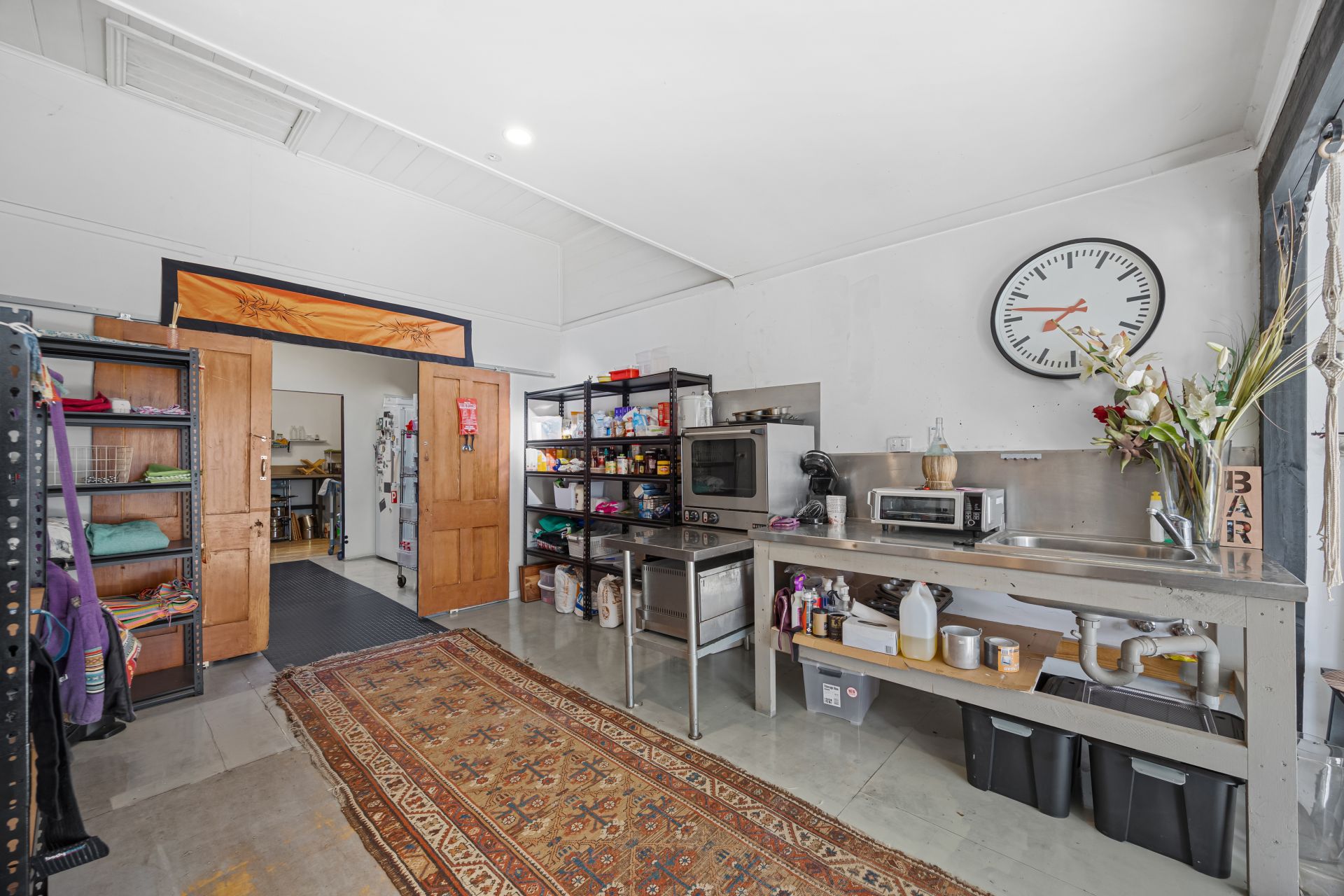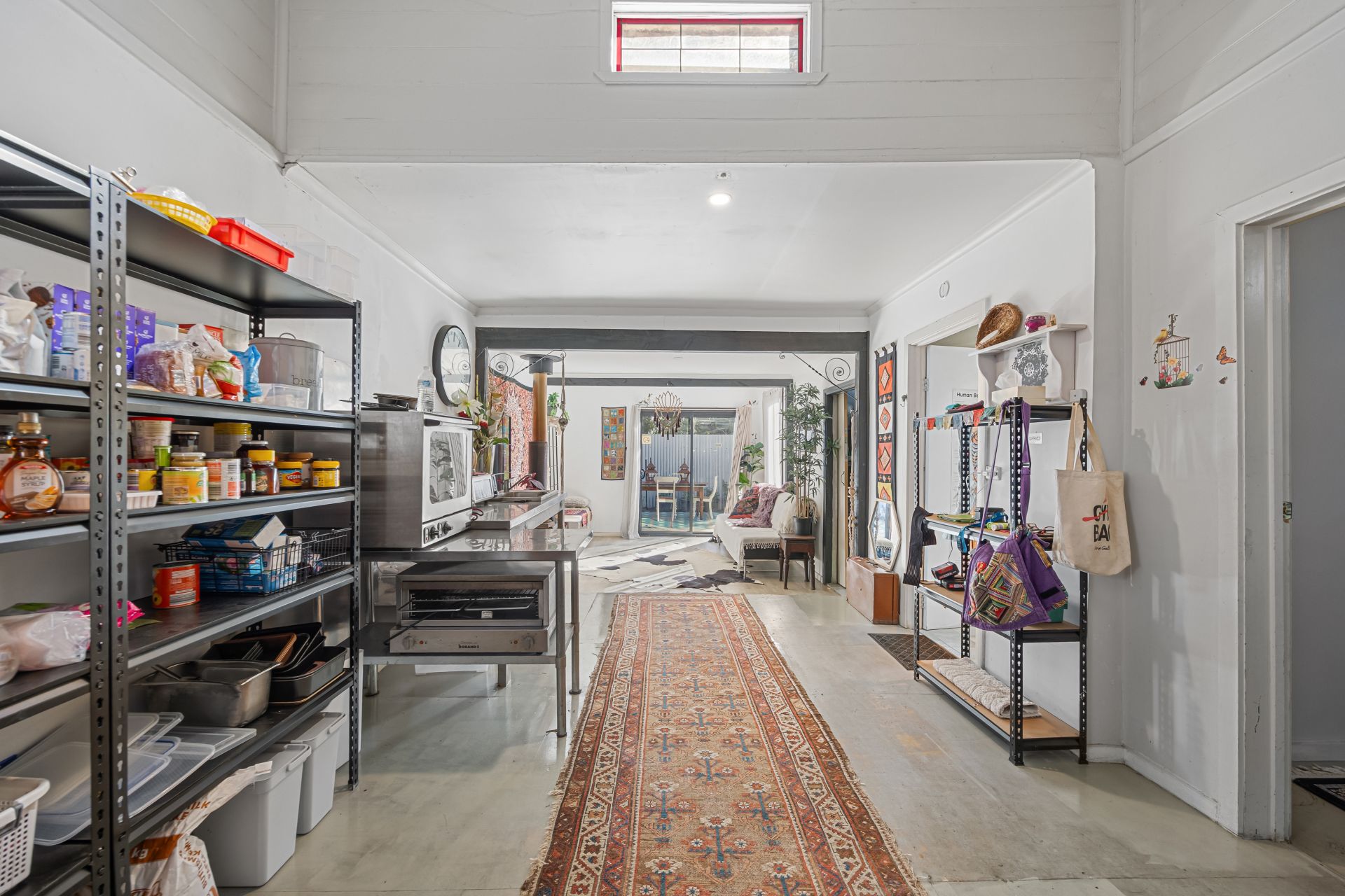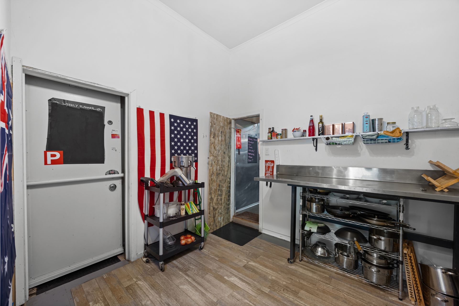 At the rear of the building is a 1-2 bedroom residential living quarters, complete with a small private deck-ideal for owner-operators or on-site management. The property boasts street-to· street frontage, adding to its flexibility and value.