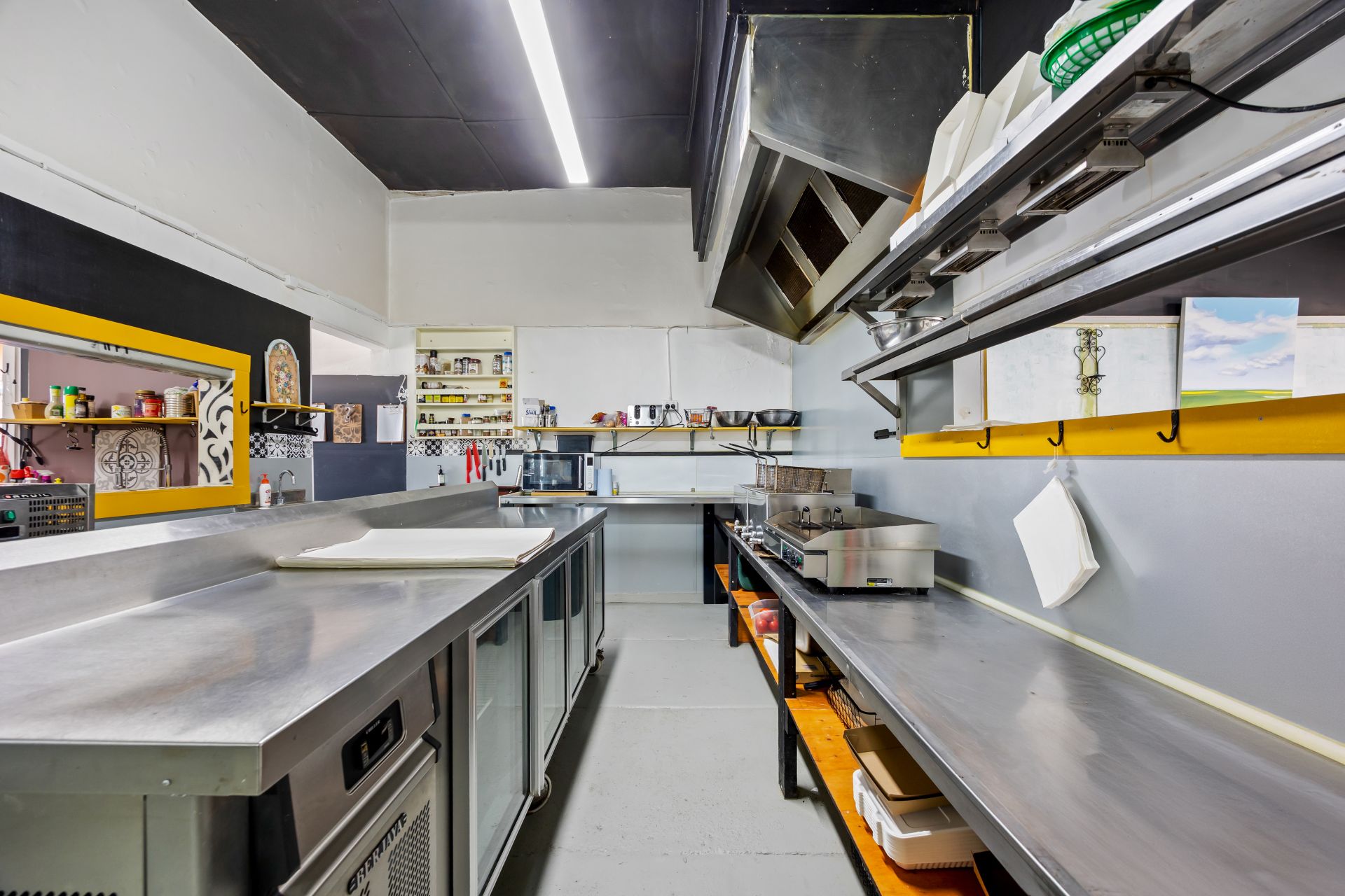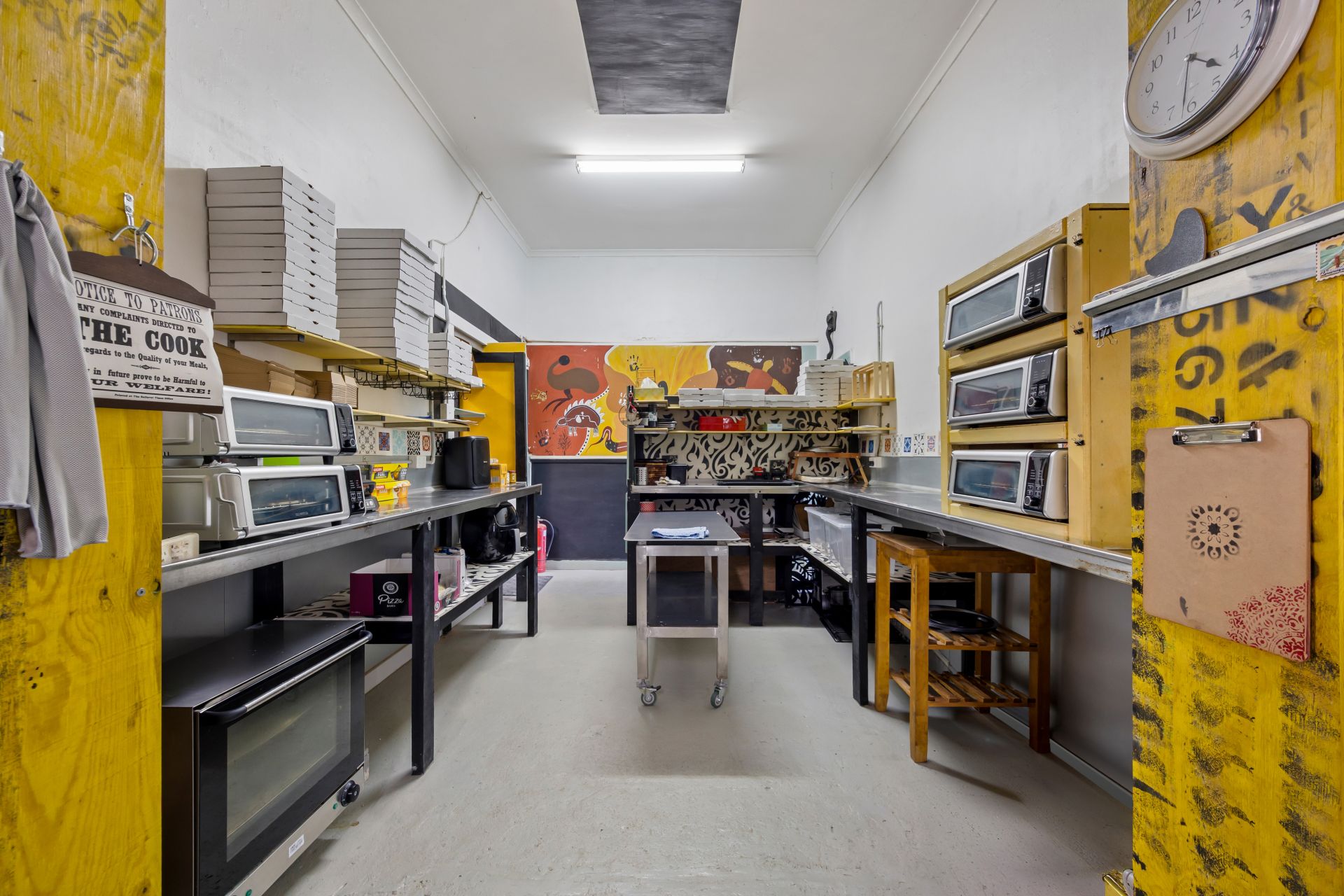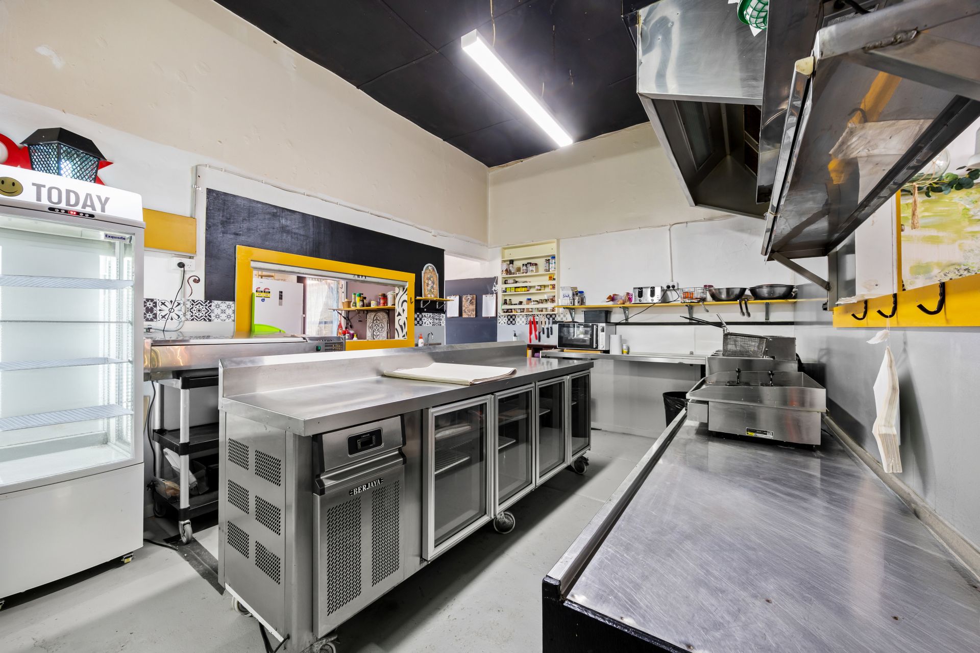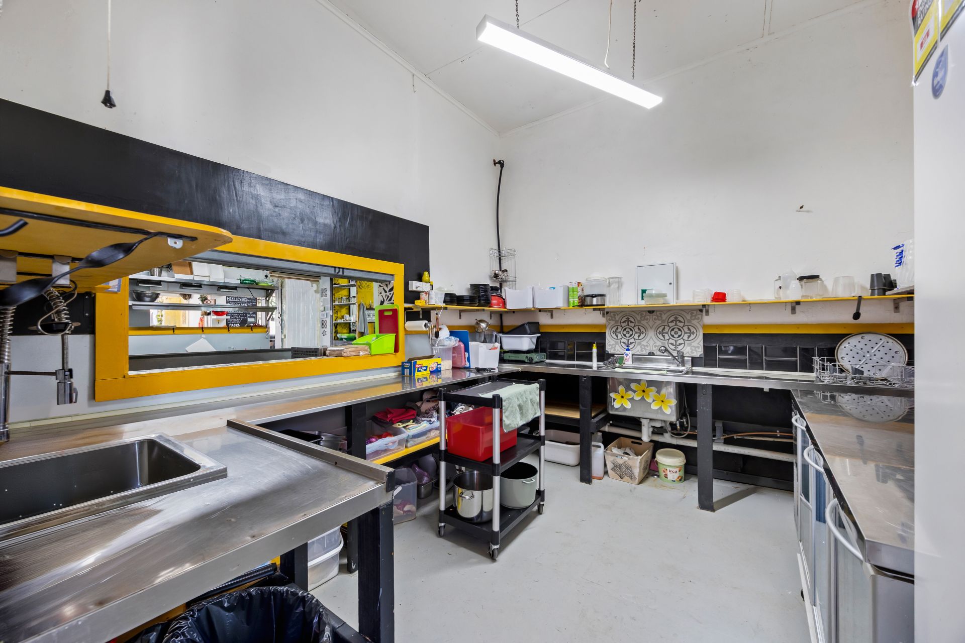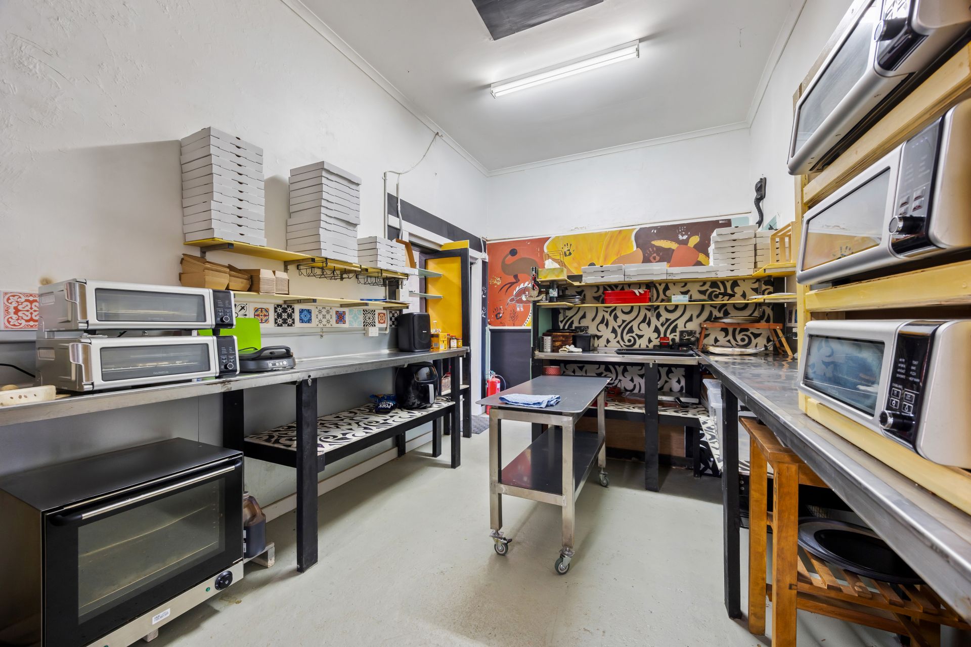 music. The large street-facing shopfront features expansive display windows and a welcoming coffee nook opening directly onto Broadway. Inside, the space is thoughtfully designed to support multiple dining experiences, with both front and rear areas set up for day and night trading. At the heart of the business is a fully equipped, stainless-steel, chef-designed commercial kitchen. Currently operating as a daytime cafe with popular fish & chip and pizza nights, the venue is